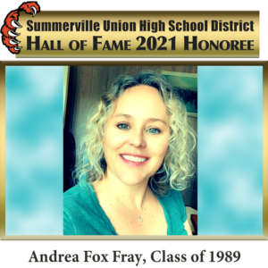 Looking back, I know my time at Summerville High School was special. My memory of the teaching and administrative staff is that there was always support, knowledge and extra effort when help or advice was sought. Teachers and coaches encouraged and inspired me and I went on to get a Bachelors Degree in Kinesiology at Cal Poly – San Luis Obispo.